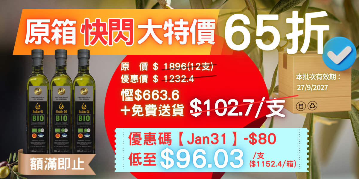 在香港,消費者對於「性價比」的敏感度極高。Olivplus Oil 今次推出的橄欖油推介優惠,實屬誠意之舉。以國際有機認證、特級初榨冷壓工藝,加上免費送貨,優惠力度遠超市面同級產品。